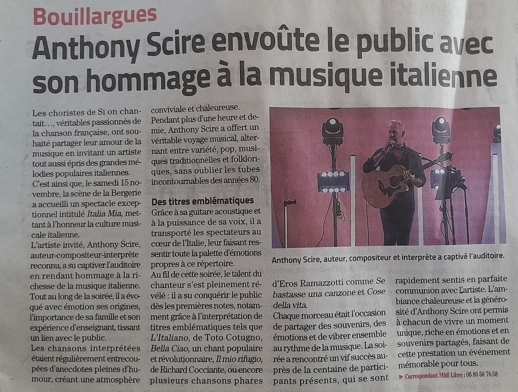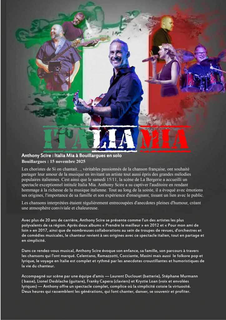 Anthony Scire débarque à Bouillargues avec Italia Mia pour une soirée de partage en musique!